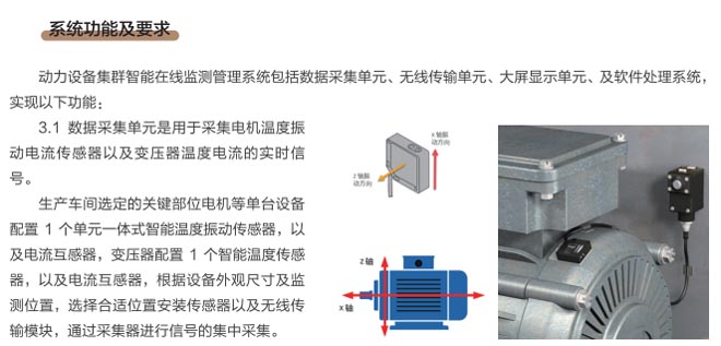 動力設(shè)備集群智能在線監(jiān)測系統(tǒng)是通過智能遠(yuǎn)程運(yùn)維系統(tǒng)(RMS)完成工業(yè)生產(chǎn)線的電機(jī)、減速機(jī)、風(fēng)機(jī)、高低壓變電、泵閥等設(shè)備運(yùn)行狀態(tài)信息及故障信息檢測,通過檢測設(shè)備的溫度、震動、轉(zhuǎn)速、電流、電壓等數(shù)據(jù)實(shí)時分析處理運(yùn)行設(shè)備狀況,同時通過信息報(bào)警推送,智能分析設(shè)備運(yùn)行狀況并實(shí)時報(bào)警等功能,能迅速找到解決問題的方法。通過在線檢測系統(tǒng)全面實(shí)現(xiàn)對關(guān)鍵設(shè)備的全生命周期管理,提高了設(shè)備有效運(yùn)維時間和效率,降低設(shè)備運(yùn)維成本,降低設(shè)備故障時間,減少現(xiàn)場人員維護(hù)量,降低維護(hù)人員的依賴性。