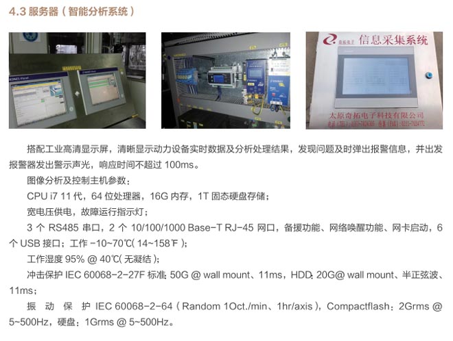 動力設(shè)備集群智能在線監(jiān)測管理系統(tǒng)用于對采集的信號進(jìn)行實(shí)時分析,包括設(shè)置監(jiān)測任務(wù),根據(jù)采集模塊提供的信息,進(jìn)行數(shù)據(jù)分析、識別故障狀態(tài)、提供報(bào)警信號、存儲歷史數(shù)據(jù)、提供內(nèi)外部通訊接口。狀態(tài)分析模塊提供設(shè)備狀態(tài)、連接狀態(tài)、報(bào)警狀態(tài)等,具有設(shè)備復(fù)位、自學(xué)習(xí),便于現(xiàn)場人員操作設(shè)備,識別設(shè)備狀態(tài)。故障信號可通過以太網(wǎng)、工業(yè)現(xiàn)場總線等方式輸出至生產(chǎn)線控制系統(tǒng)或集中控制系統(tǒng),為運(yùn)行人員提供清晰的故障狀態(tài)指示。同時,狀態(tài)分析設(shè)備需支持 MQTT、OPC-UA 等工業(yè)物聯(lián)網(wǎng)通訊協(xié)議,以滿足云端數(shù)據(jù)分析和遠(yuǎn)程專家服務(wù)的需求。